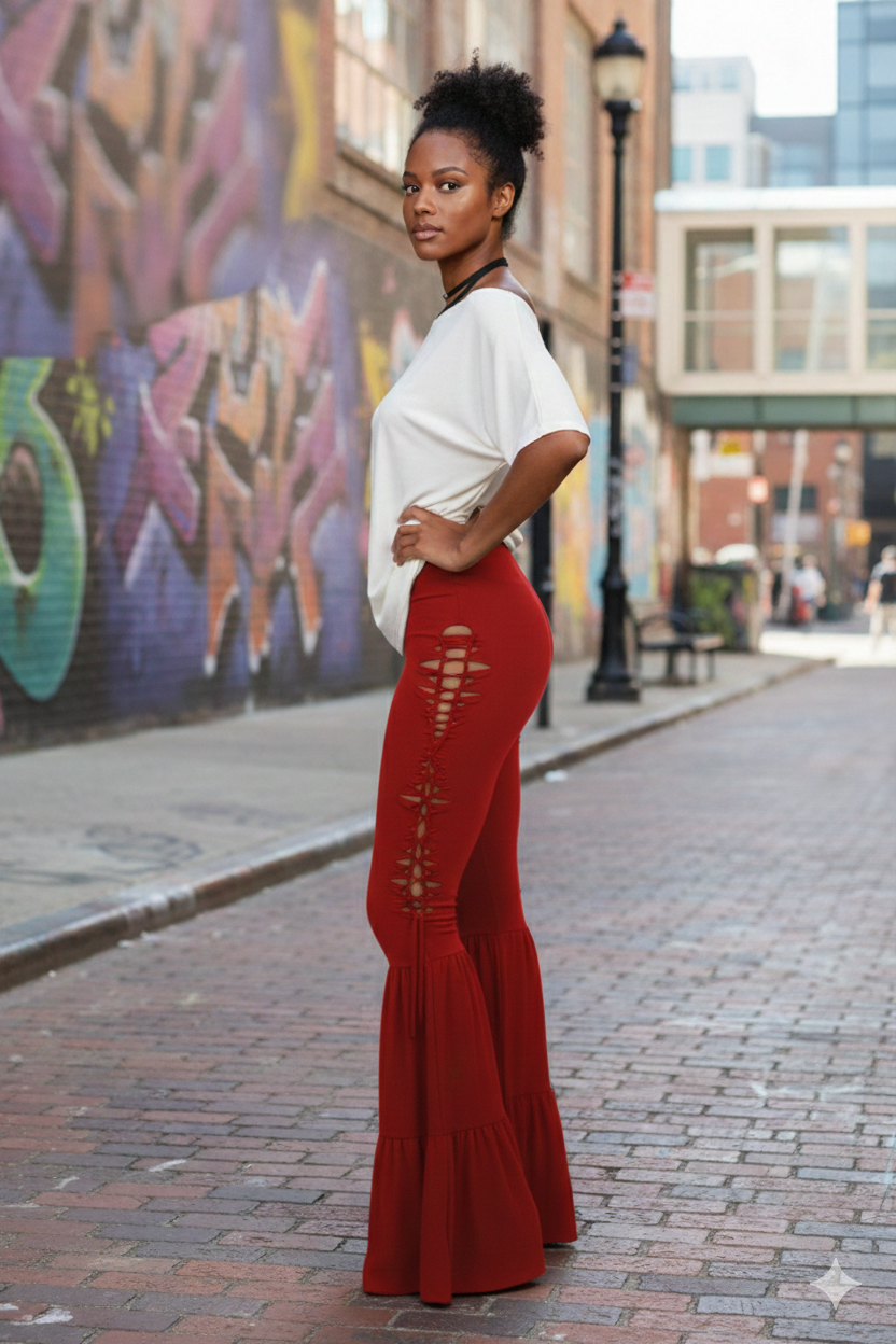 Apresentamos a nossa Calça Legging de Cintura Alta, uma peça que une o conforto excepcional da modelagem justa com detalhes customizados feitos à mão, resultando em uma obra-prima de moda e arte.