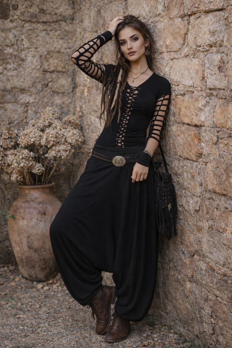 Juntos, eles criam um look ritualístico, etéreo e poderoso — perfeito para quem vive a moda como uma extensão da alma.