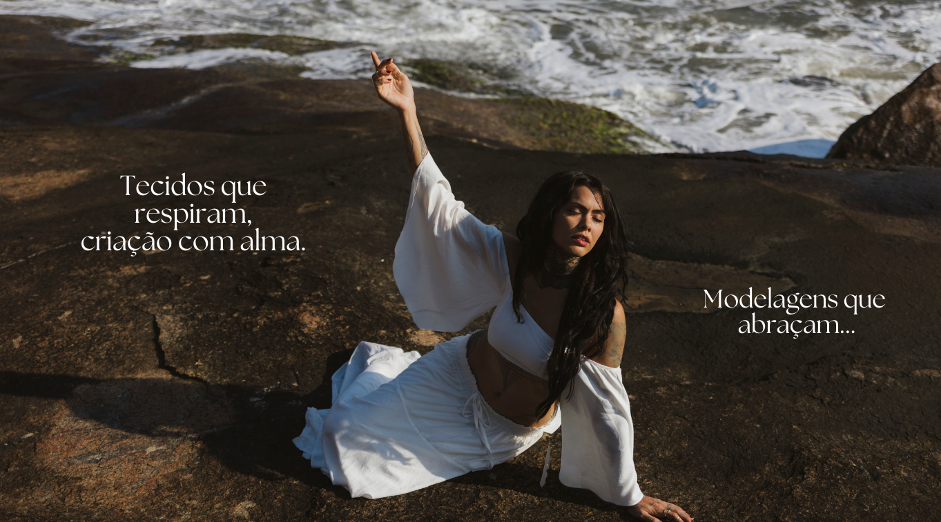 Com caída fluida, camadas delicadas e movimento orgânico, ela percorre o corpo como uma maré tranquila. Sua modelagem amplia a sensação de leveza, trazendo conforto e força ancestral em cada passo.