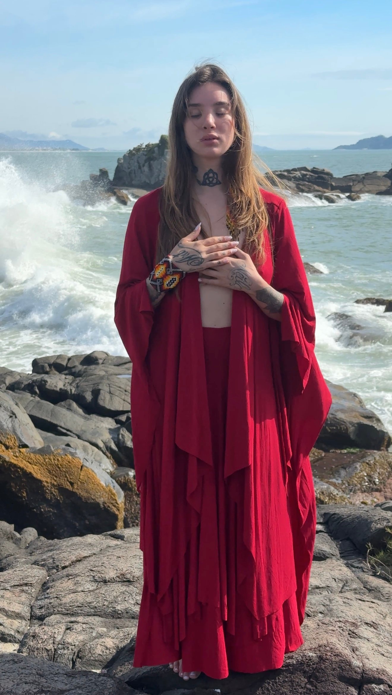 Com seu caimento fluido e presença marcante, ele é perfeito para quem quer vestir arte, mistério e liberdade — seja para complementar um look casual ou transformar um momento simples em pura contemplação. -