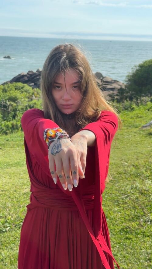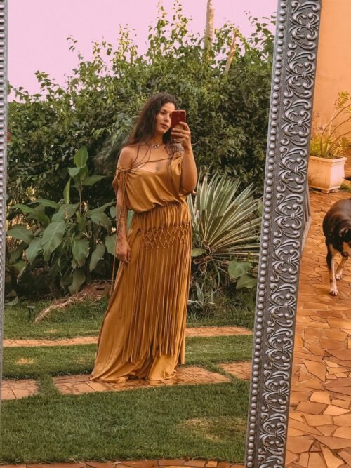 Uma criação que expressa liberdade, presença e poder feminino em cada curva e detalhe. -