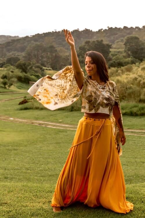 Conecte-se com a sua essência e com a natureza com a Saia Aroeira da Evolução Eco.Beleza natural: