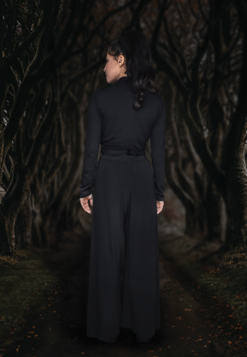 O preto não é ausência — é presença. É a noite fértil que acolhe e revela o que há de mais profundo.Este não é apenas um look — é um ato de invocação.
