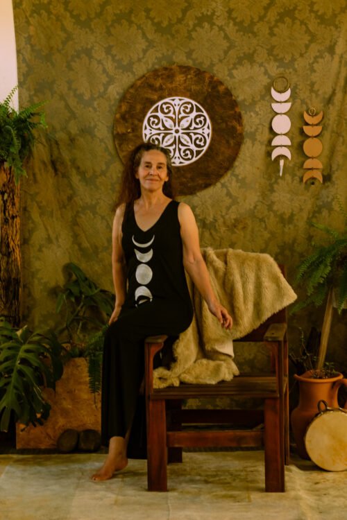 Nosso manto Lunar com Touca é uma obra-prima de artesanato, cuidadosamente pintada à mão com a imagem da lua. É mais do que uma peça de vestuário; é um símbolo de poder e conexão.