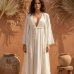 Compondo essa jornada, o Kimono Águia pousa suave sobre os ombros, trazendo o acolhimento do capuz e o voo da alma. Seu tecido fluido e claro simboliza a conexão com o céu, com os ciclos e com a sabedoria ancestral das mulheres que alçam voo.