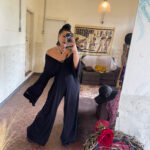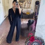 Macacão longo de mangas compridas, decote frontal profundo e calça pantalona ampla, que flui com leveza a cada passo.