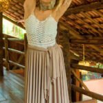 Acessórios naturais, como colares de sementes ou pulseiras de pedras, para completar o visual com um toque de espiritualidade.