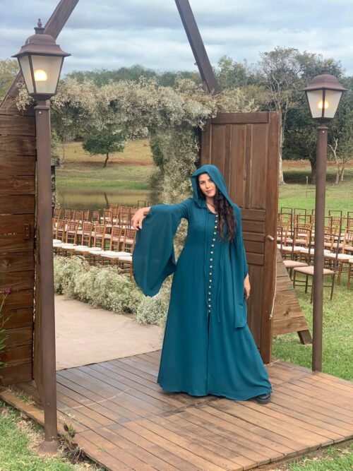 Fenda: A fenda adiciona um toque de modernidade e sensualidade ao vestido longo.
