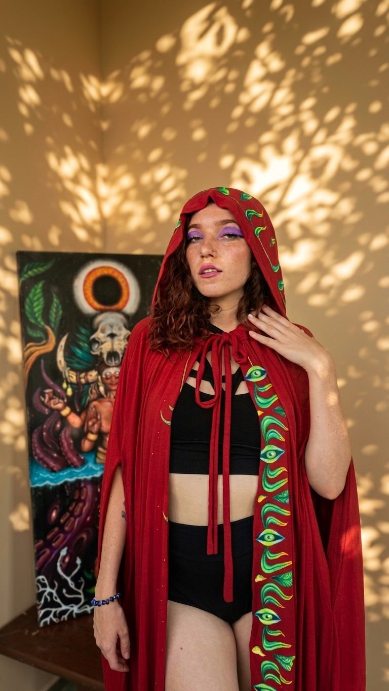 Uma peça viva, entre mundosDo encontro entre a artista visionária Stella Nataly e a marca de moda consciente Evolução Eco, nasce o Manto Visionário : uma criação que vai além do vestir: é um instrumento de poder, um amuleto em forma de roupa.